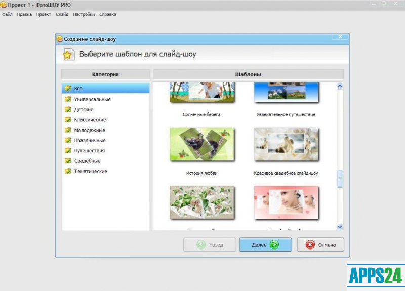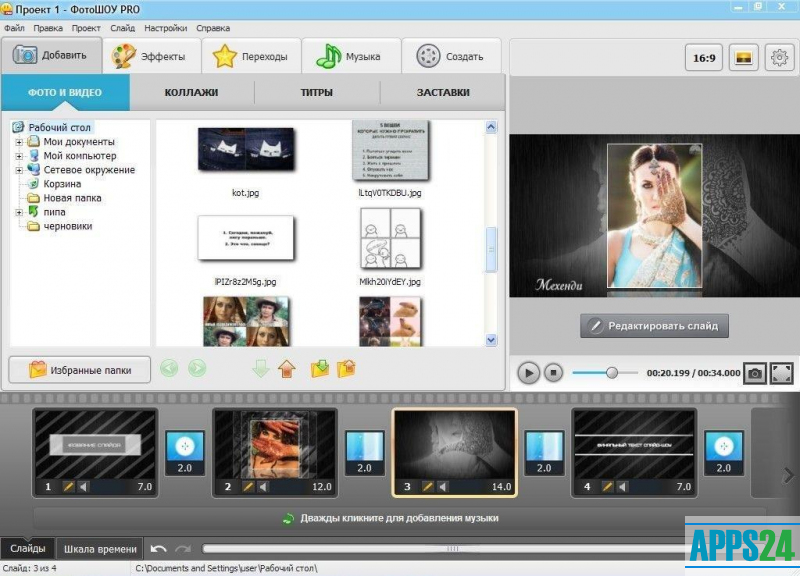 ФотоШОУ легко освоить, программа имеет удобный , кроме того имеется функция записи слайд-шоу на DVD-диски.